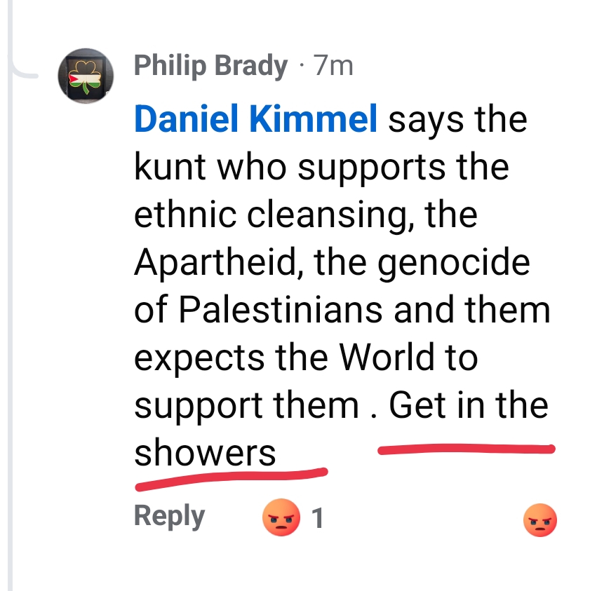 rabid anti-Semite says “get in the showers” a reference to the Nazi gas chambers of Jews. what a disgusting human.